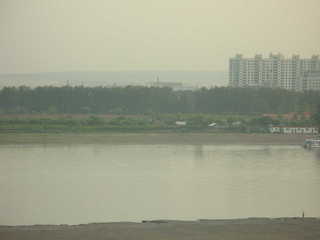 撫遠の河港に上陸後、税関の建物に進んでいく。税関の前はコンクリートの広場になっていて、さわやかな川風が吹き抜けていく。ハバロフスクの空気も良かったが、撫遠の空気は都市のそれではなく、草の香りがした。