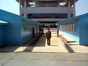 平壌から開城への高速道路 板門店手前のチェックポイントにある板門店の模型